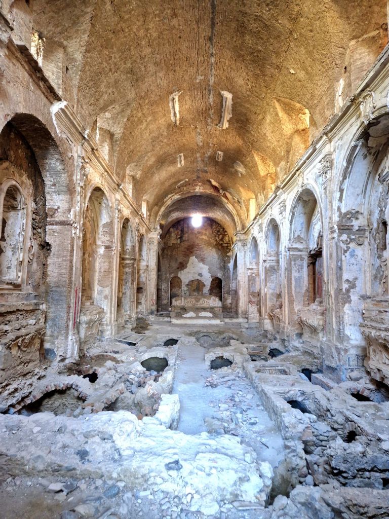 Nel 1807 iniziano i primi sfortunati avvenimenti: un saccheggiamento, un incendio della biblioteca da parte dell’esercito francese di Napoleone Bonaparte e un violento terremoto nel 1857. La proprietà passò al demanio e di qui fino al 1894 divenne un cimitero. Per tutto il secolo successivo è stato oggetto di atti vandalici, a danno dei morti sepolti all’interno della chiesa, oltre che nei suoi pressi. Le ragioni che hanno spinto i responsabili a tali barbarie sono purtroppo solamente ipotizzabili.