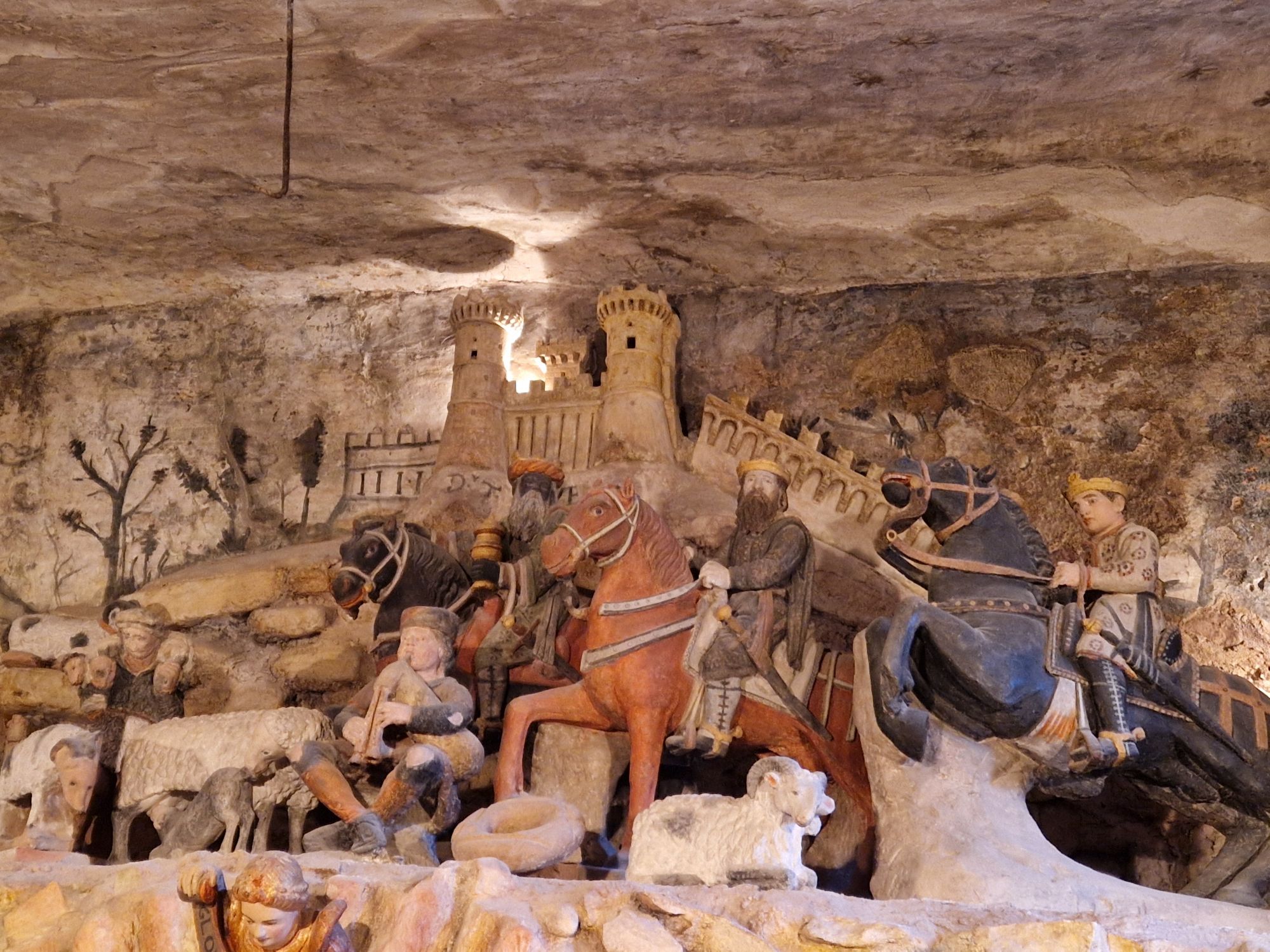 Nella parte più antica, oggi disabitata, si trova la chiesa di Santa Maria Maggiore, edificata nel Cinquecento sulla primitiva chiesa, costruita dai monaci basiliani nel IX secolo. La chiesa conserva vere e proprie opere d’arte tra le quali un trittico di fine ‘300 con al centro la Madonna col Bambino in trono, attribuita ad un autore fiorentino della scuola di Giotto. All’interno della cripta, decorata da splendidi affreschi, si può ammirare l’incantevole presepe in pietra scolpito attorno al 1550 dallo scultore Altobello Persio (1507-1593). È il risultato di un accurato lavoro attraverso il quale l’autore ha plasmato la materia per dare forma e colore alla Sacra Famiglia.